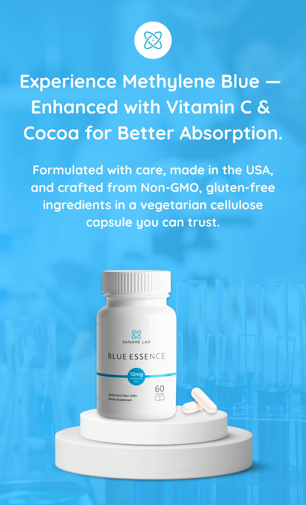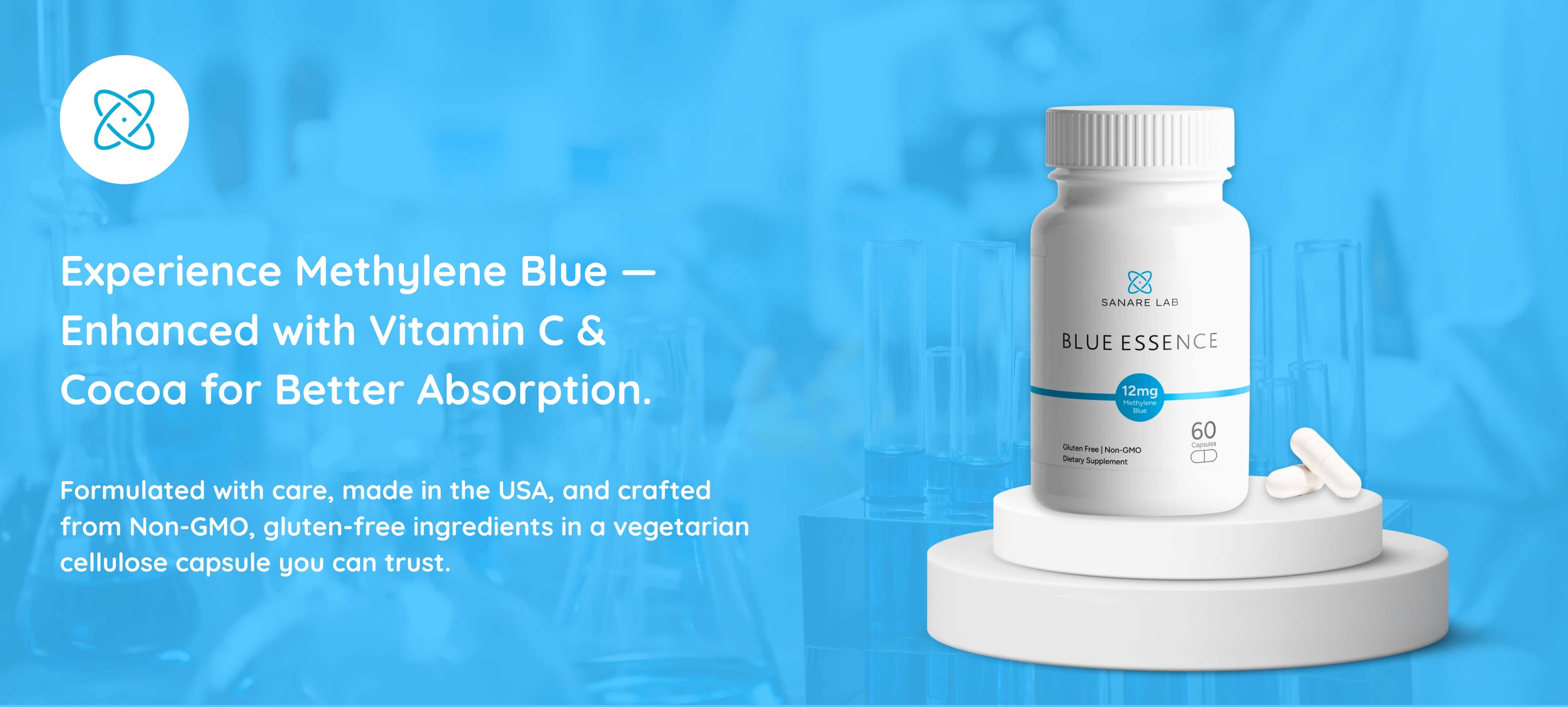 Blue Essence – Methylene Blue 12 mg | 60 Capsules | with Vitamin C + Organic Cocoa Powder