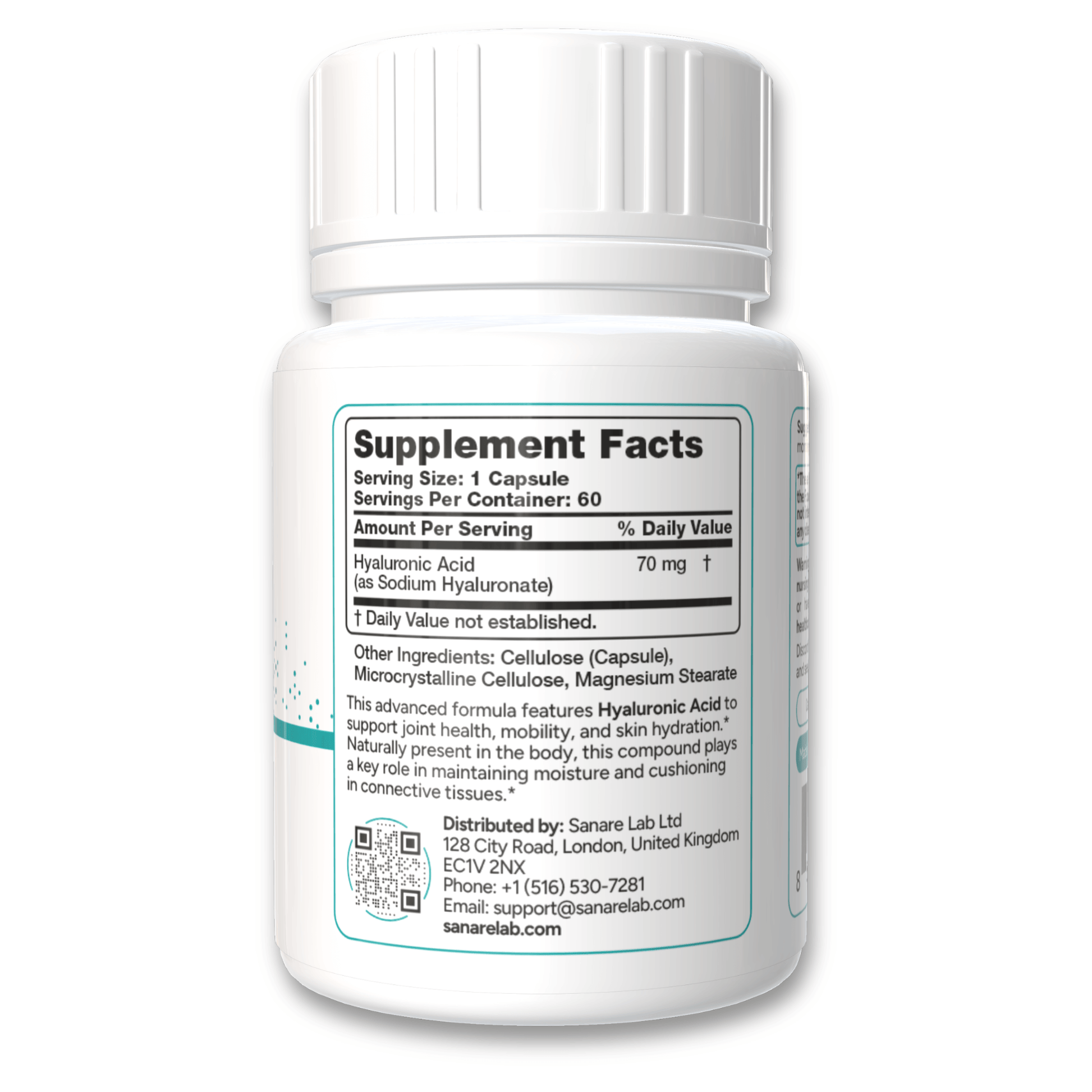 Whether you're looking to ease daily movement, enhance skin suppleness, or support overall tissue hydration, Hyaluronic Acid 70 mg offers a clean and reliable approach to maintaining your body’s natural moisture balance.